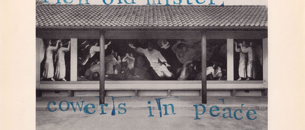 After years working primarily with her own dream texts, these series emphasize the image and incorporate text from a variety of sources. Found, collaged, ripped up, re-invented: words and images are used to play with misunderstandings and chance as the lessons of the dreaming mind are put into practice.